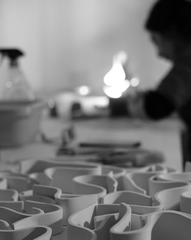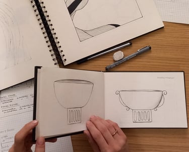Dietro ogni oggetto c'è sempre lo sviluppo di un'idea, attraverso una progressione di pensieri e azioni quali, schizzi progettuali, studio della forma e delle possibili texture, sperimentazione dei colori e tanto altro.