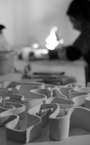 Ogni smalto è realizzato a mano da una miscela unica di minerali e ossidi e attinge ai colori e alle texture del paesaggio in continuo cambiamento fuori dalle finestre del mio studio. Questo processo a volte mi dà qualche delusione in più ma molta gioia e soddisfazione soprattutto quando i pezzi escono dal laboratorio per entrare a far parte della vita di qualcun altro.